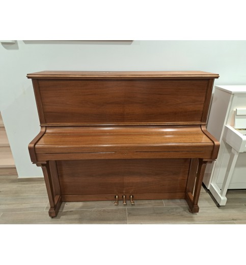 Piano droit d'occasion Seiler 128 en noyer satiné.