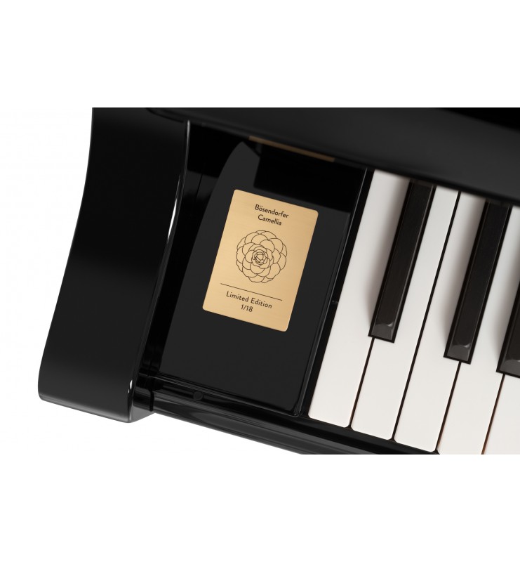 Camellia est une série limitée de 18 instruments réalisés sur le modèle 214VC Bösendorfer Vienna Concert en noir poli. Chaque piano porte une plaque en laiton numérotée. Camellia. Une pièce de collection à la grâce intemporelle.