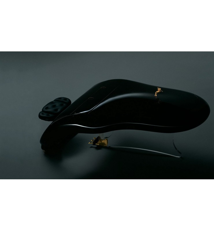 Le piano est en finition noire brillante et les accastillages son plaqués or.
